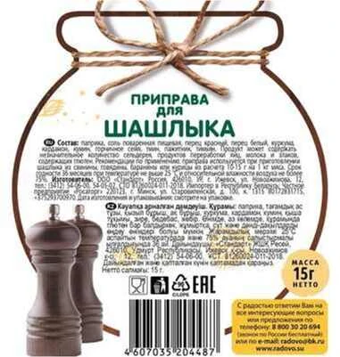 паприка, соль поваренная пищевая, перец красный, перец белый, куркума, кардамон, кумин, горчичное семя, тмин, пажитник, тимьян.