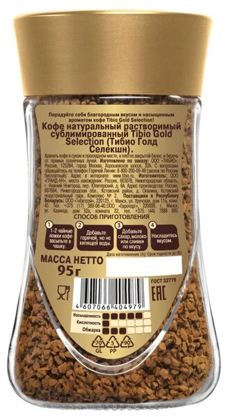 Кофе натуральный растворимый сублимированный Тибио Голд Селекшн 95 г