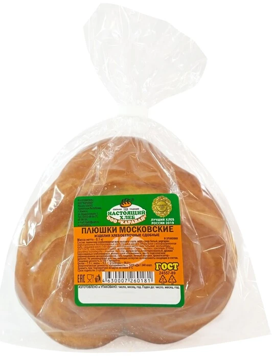 пшеничная хлебопекарная мука высшего сорта, вода, сахар белый, маргарин: /рафинированные дезодорированные растительные масла в натуральном и модифицированном виде (пальмовое масло и его фракции, подсолнечное масло), вода питьевая, эмульгаторы (Е471,Е475), соль поваренная пищевая, ароматизатор «Сливки – молоко», краситель (Е160а), регулятор кислотности – лимонная кислота/, меланж яичный пастеризованный, дрожжи прессованные хлебопекарные, молоко сухое обезжиренное, масло подсолнечное рафинированное дезодорированное, соль пищевая, яичный порошок, ароматизатор - ванилин.