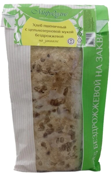 Хлеб бездрожжевой пшеничный с цельнозерновой мукой 500 г Миродолье