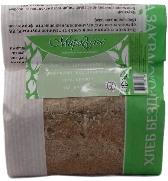 Хлеб бездрожжевой с семенами подсолнечника, льна, кунжута 300 г Миродолье