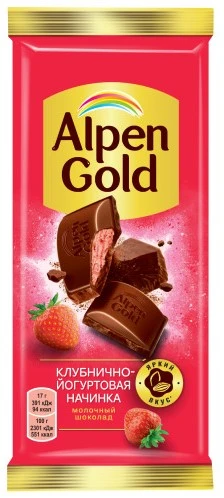 Шоколад Aльпен Голд с клубнично-йогуртовой начинкой 80 г