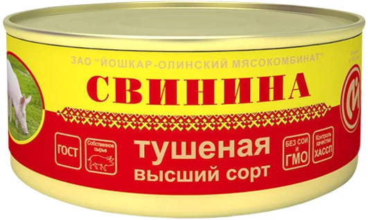 - Отборная тушеная свинина высшего сорта от Йошкар-Олинского мясокомбината отличается нежным вкусом и классическим аппетитным ароматом. Натуральный состав, а также специи и пряности делают продукт по-настоящему вкусным. Одной банки тушенки достаточно, чтобы приготовить обед или ужин для небольшой семьи из 2-3 человек. Продукция "Йола" пользуется популярностью среди потребителей благодаря высокому качеству сырья и готовой продукции. Оцените и вы!