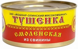 - Тушенка "Смоленская" - консервированный продукт, который удобно взять с собой на пикники для приготовления вкусных и питательных блюд. Ее можно употреблять как самостоятельный продукт, готовить вторые блюда и супы. Продукт производится на Йошкар-Олинском мясокомбинате из отборной свинины с использованием ароматных специй. Технология изготовления, проверенная временем, позволяет выпускать продукт, который ценится потребителями за состав, вкус и доступную цену. Попробуйте и вы!