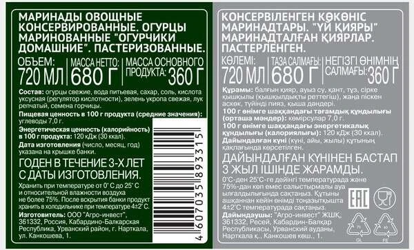 Огурчики Домашние 6 соток 720 мл Десан