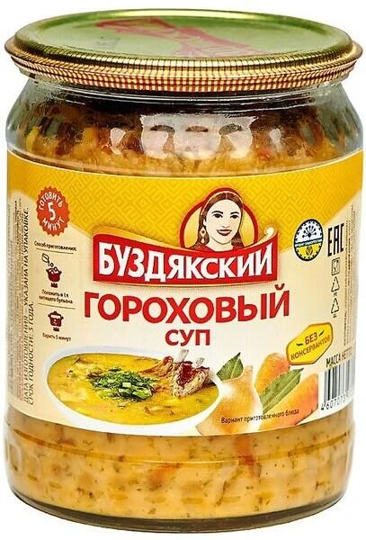 горох, морковь, лук репчатый, жир говяжий, соль, петрушка, лавровый лист, перец красный. Может содержать следы глютена.