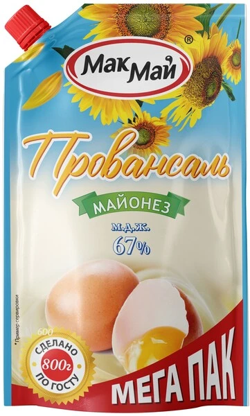 масло подсолнечное рафинированное дезодорированное, вода питьевая, сахар, стабилизационная система (порошок яичного желтка 1%, крахмал кукурузный модифицированный, ксантовая камедь, гуаровая камедь), соль пищевая, регуляторы кислотности: кислоты уксусная и лимонная; консервант сорбат калия, ароматизаторы: "Горчица", "Молоко"; краситель натуральный бета-каротин, антиоксидант ЭДТА.