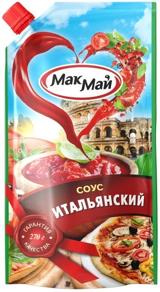 вода питьевая, томатная паста, сахар, загуститель крахмал кукурузный модифицированный, соль пищевая, регуляторы кислотности: кислота уксусная, кислота лимонная; пряности и овощи сушеные молотые: чеснок, базилик, перец красный, лук, орегано, консерванты: сорбат калия, бензоат натрия.