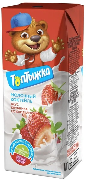 - Коктейль молочный "Топтыжка" со вкусом клубники со сливками изготовлен из натурального молока. На всех этапах производства проходит контроль качества. Коктейль еще полезнее благодаря сниженному содержанию сахара. Поможет утолить чувство голода и поднимет настроение.