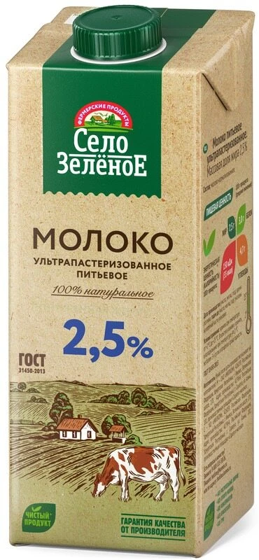 Молоко ультрапастеризованное 2,5% 950 мл Село Зелёное