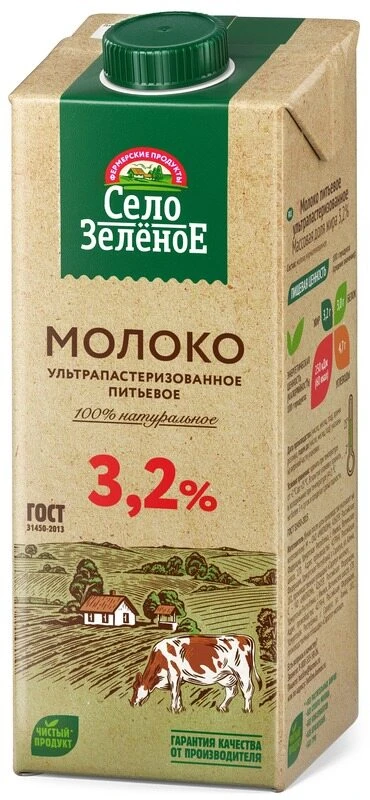 Молоко ультрапастеризованное 3,2% 950 мл Село Зелёное