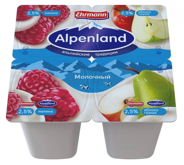 Йогурт фруктовый малина/яблоко-груша 2,5% 95 г Альпенленд