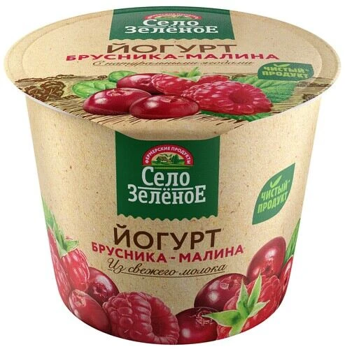 Йогурт с брусникой и малиной 3,5% 120 г Село Зелёное