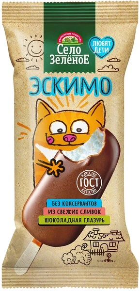 Эскимо пломбир ванильный в шоколадной глазури 15% 80 г Село Зелёное