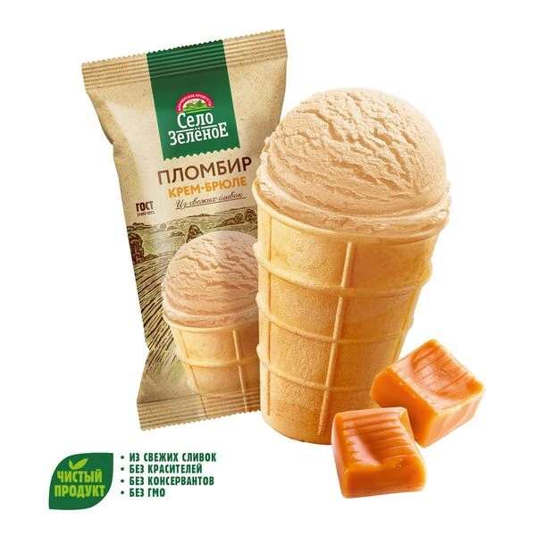 Пломбир крем-брюле 15% в вафельном стаканчике 90 г Село Зелёное