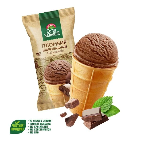 Пломбир шоколадный 15% в вафельном стаканчике 90 г Село Зелёное