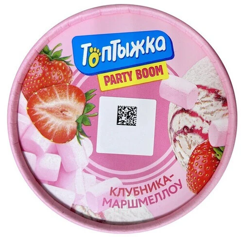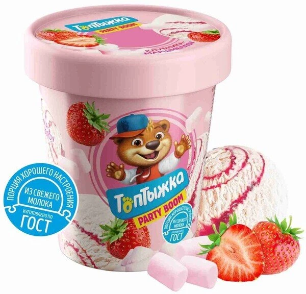 Пломбир ванильный 12% с воздушным суфле и наполнителем клубника-маршмеллоу 300 г Топтыжка