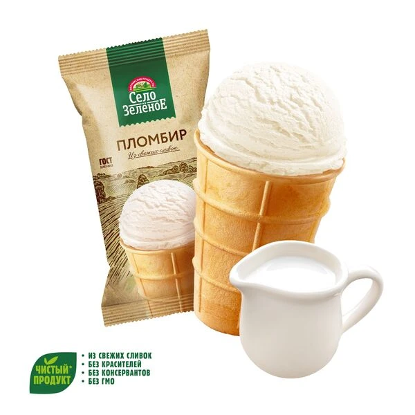 Пломбир ванильный 15% в вафельном стаканчике 90 г Село Зелёное