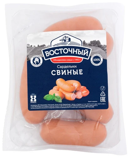свинина, вода питьевая, мясо цыпленка-бройлера, свиная шкурка, соль, смесь посолочно-нитритная (соль, фиксатор окраски Е250), сывороточный продукт (с лактозой), усилитель вкуса и аромата Е621, ароматизаторы, экстракты специй, декстроза, специи, экстракт паприки, сахар белый, чеснок сушеный, регуляторы кислотности (Е451i, Е338), стабилизатор Е450, загустители (Е407, Е412, Е415), желирующий агент Е508, соевый белок, краситель Е120. Возможно наличие горчицы, злаков, содержащих глютен, кунжута, орехов, сельдерея, яиц и продуктов их переработки.