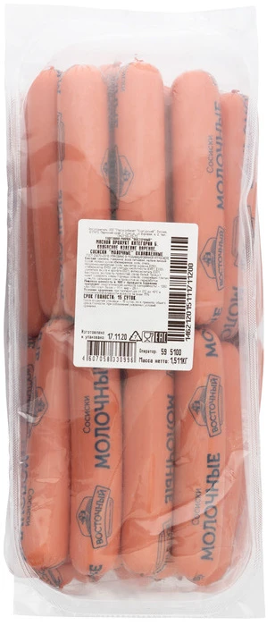 свинина, говядина, вода питьевая, меланж яичный сухой, молоко сухое обезжиренное, соль, смесь посолочно-нитритная (соль, фиксатор окраски Е250), стабилизатор Е450, регуляторы кислотности (Е451, Е330), усилитель вкуса и аромата Е621, антиокислитель Е301, декстроза, экстракты пряностей, сахар белый. Продукт может содержать следы горчицы, злаков, содержащих глютен, кунжута, сельдерея, сои и продуктов их переработки.