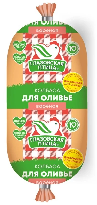 Колбаса вареная куриная Для оливье 2-й сорт 350 г Глазовская птица