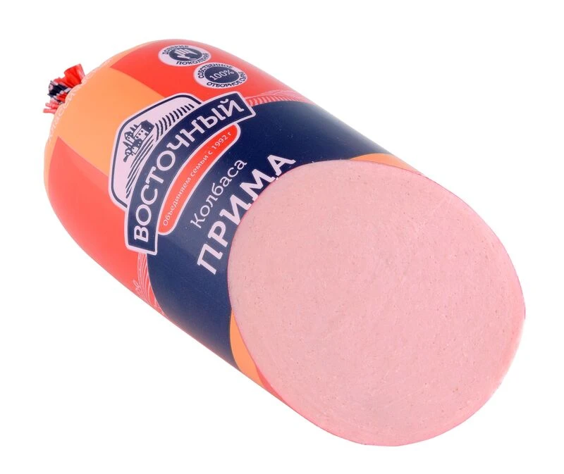 - В составе вареной колбасы Прима бренда «Восточный» три вида мяса: свинина, мясо птицы, говядина. При производстве вареной колбасы используется только охлажденное мясо, что делает продукт более сочным и нежным. Мясное направление вкуса по достоинству оценят мужчины, а для женщин это отличный продукт, чтобы приготовить питательные закуски.