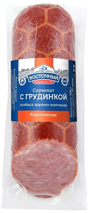 свинина, вода питьевая, свиная шкурка, щековина свиная, говядина, крахмал картофельный, соль, жир-сырец свиной, кожа куриная, декстроза, усилитель вкуса и аромата Е621, пряность (черный перец), экстракт пряности (черный перец), смесь посолочно-нитритная (соль, фиксатор окраски Е250), регуляторы кислотности (Е451i, Е450iii), стабилизаторы (Е450i, Е450iii, Е450v, Е452i, Е401, Е452ii), антиокислитель Е301, ароматизатор, молоко сухое обезжиренное, уплотнитель Е516, красители (Е171, Е120), гемоглобин свиной. Возможно наличие горчицы, злаков, содержащих глютен, кунжута, орехов, сельдерея, сои, яиц и продуктов их переработки.