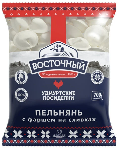 Состав фарша: свинина, вода питьевая, лук репчатый свежий, говядина, сливки нормализованные, соль, клетчатка растительная (пшеничная), ароматизатор, усилитель вкуса и аромата (глутамат натрия), перец черный.