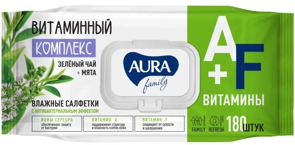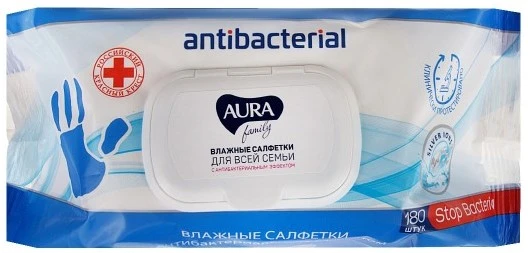Салфетки влажные антибактериальные для всей семьи 180 шт. Аура Фэмили